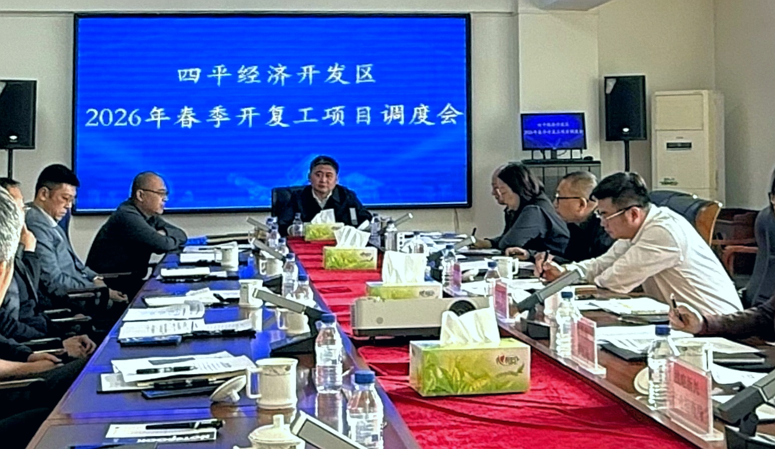 11月17日上午,经开区管委会主任高跃永主持召开2026年春季开复工项目调度会议,专题听取各项目进展情况汇报,并就下一阶段重点工作进行安排部署。
